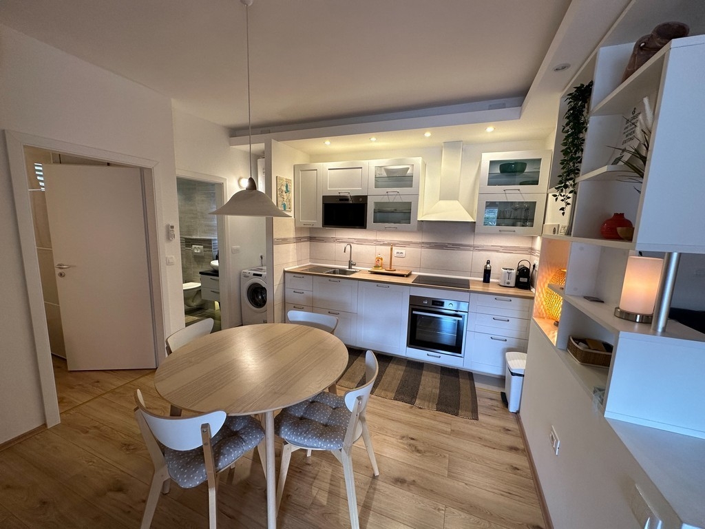 Apartment can accommodate 4 guests. Beds are situated in 1 sleeping rooms, but also in the living room, within 49m2. Guests can use a private terrace to enjoy the warm summer evenings. The apartment offers the sea view. This accommodation unit welcomes pets at an additional charge. INCLUDED IN THE PRICE: tourist tax, final cleaning, air-conditioning, parking, internet, iron, ironing board, hairdryer. OPTIONAL ADDITIONAL COSTS: pets (€10.00 per night). The availability of additional services for your chosen dates of stay, as well as their prices (if none are listed) must be checked ahead of time. Any additional services not shown in the price calculation are payable directly to the property owner and only if used by the visitor. Discounts to the base price: free day 14=13 (for reservations of 14 or more days you get one free day for the stay until 31122026).