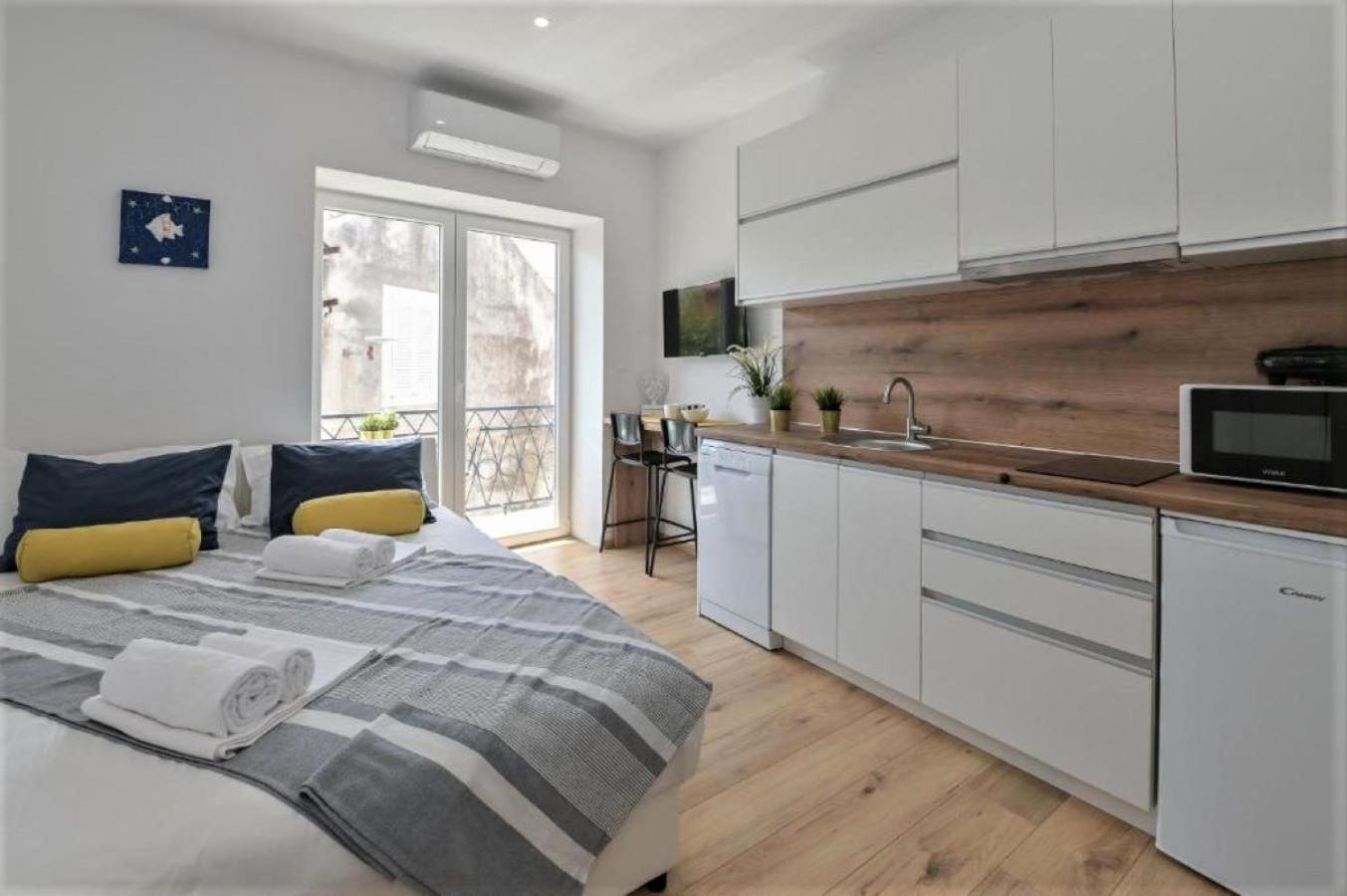 One-Bedroom Apartment. Featuring a private entrance, this air-conditioned apartment is comprised of a kitchen, 1 bedroom and 1 bathroom with a shower and a hairdryer. Guests can make meals in the kitchen that comes with a stovetop, a refrigerator, a dishwasher and kitchenware. Boasting a balcony with sea views, this apartment also offers soundproof walls and a flat-screen TV with cable channels. The unit offers 2 beds.
