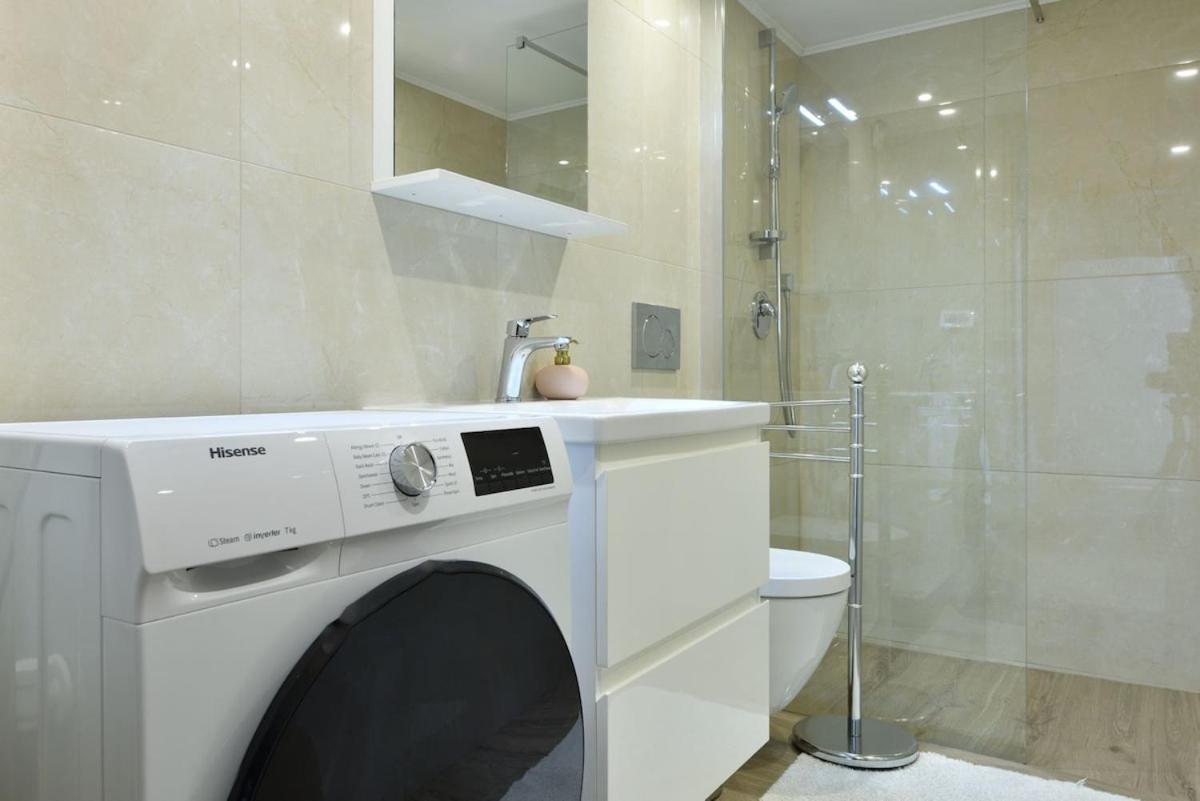 Studio Apartment with One Double Bed. Boasting a private entrance, this air-conditioned apartment includes a kitchen, 1 bedroom and 1 bathroom with a shower and a hairdryer. In the well-equipped kitchen, guests will find a stovetop, a refrigerator, a dishwasher and kitchenware. Featuring a terrace, this apartment also offers a washing machine, a coffee machine and a flat-screen TV with satellite channels. The unit has 1 bed.